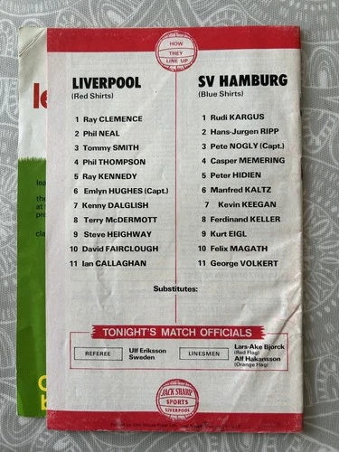 Liverpool v Hamburg SV 1977 European Super Cup Programme