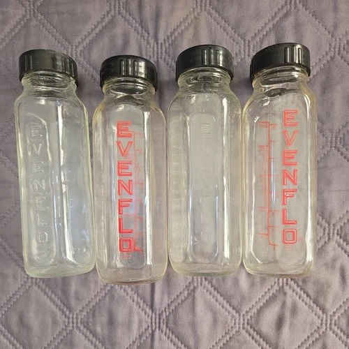 lot of 3 vtg glass evenflo baby bottles 8 oz & 4 oz USA