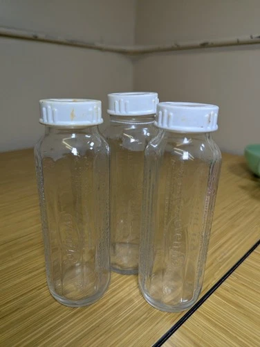 K Lot of 3 Evenflo Glass Baby Bottles & Rings Vintage 8 ozs Made in USA