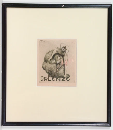 Georg Erler/autographed/etching/ex libris/Dr. Lenze/! framed