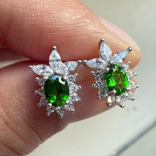 925 Sterling Silver Earrings 4x3mm Natural Diopside Gemstone Zircon Flower Gift