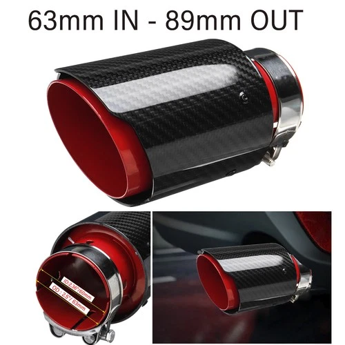 New 2.5'' 63mm - 89mm Universal Glossy Carbon Red Car Exhaust Tip End Pipe Muffl