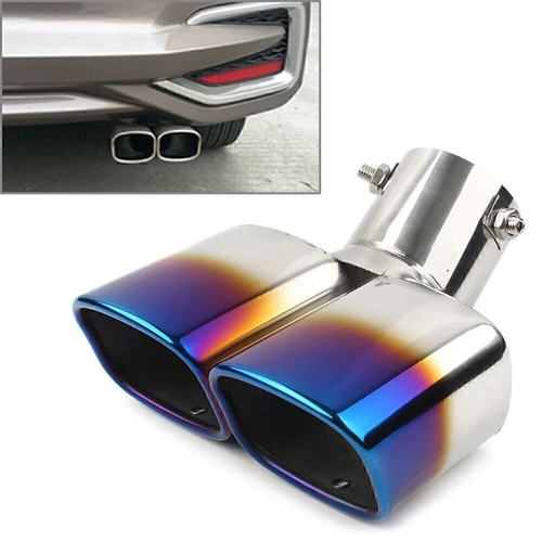 Universal Dual Stainless Steel Rear Exhaust Pipe Tail Muffler Tip Square Color