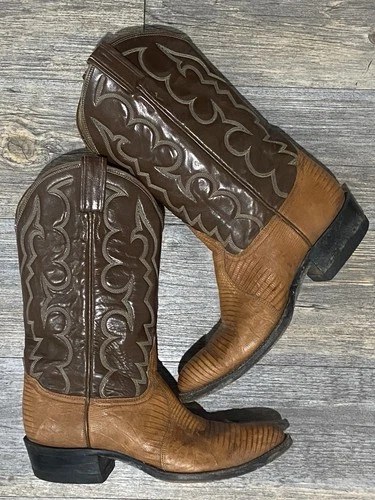 VTG Tony Lama Exotic Lizard Cowboy Brown Boots Size 8B Style 8006 Western Rodeo