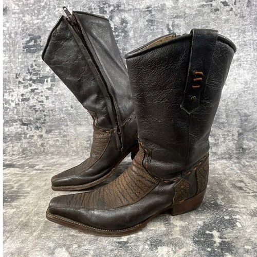 Forastero Men 8 Side Zip Boots Brown Leather Square Toe Exotic Print Western