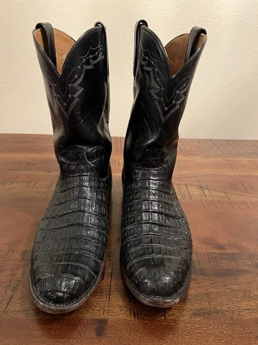 Lucchese Black Caiman Cowboy Boots Men’s 9.5D Western Exotic Leather Made In USA