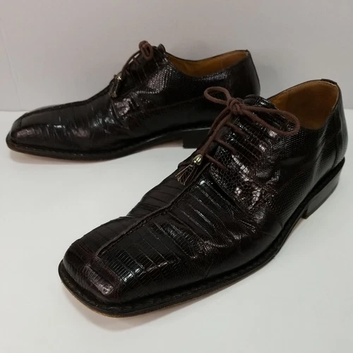David Eden Genuine Exotic Lizard Leather Mens Shoes Size 9.5 Dark Brown
