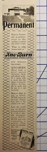 1913 Kno-Burn Expanded Meyal Lath Print Ad - Chicago Stucco House Wall Base