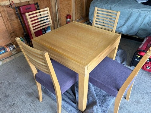Solid Oak Extending Dining Table with Four Chairs In Good Condition