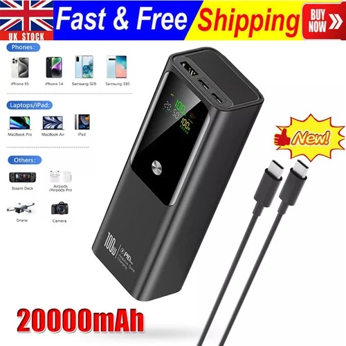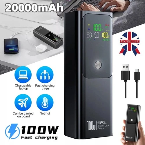 Power 20000mAh Bank 100W USB Fast Charger External Battery Pack for Laptop Phone