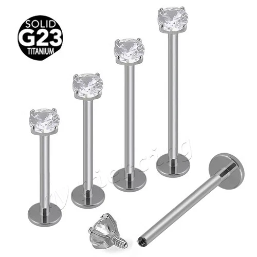 PAIR 16g G23 Titanium CZ Prong Set EXTRA LONG Cheek Labret Dimple Piercing