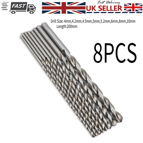 8pcs 4-10mm Twist Drill Bits,High-Speed Steel Extra Long Drill Bit 200mm Length