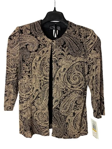 Vintage Alex Evenings Open Front Cardigan Size S Hook and Eye Shoulder Pads New