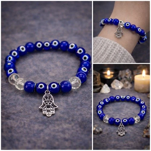 Evil Eye Quartz Bracelet Hand Charm Witchy Boho Apothecary Protection Jewelry