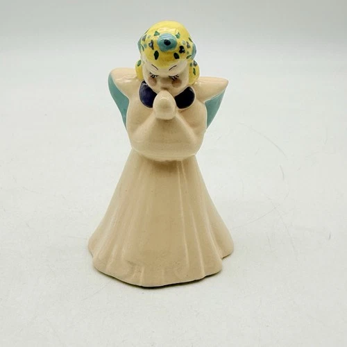 Vtg Kay Finch Praying Angel Figurine, California Pottery, White Blue Eyes Closed
