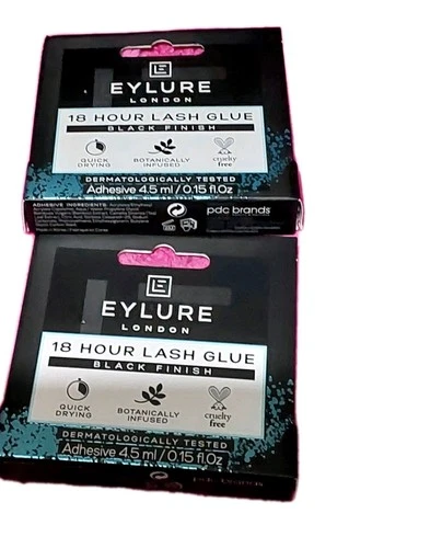 2 X Eylure London 18 Hour Lash Glue, Latex-Free, Clear Finish, Quick-Dry, 4.5ml