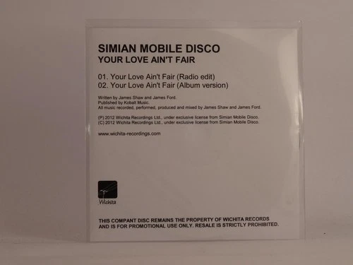 SIMIAN MOBILE DISCO YOUR LOVE AIN'T FAIR (F11) 2 Track Promo CD Single including