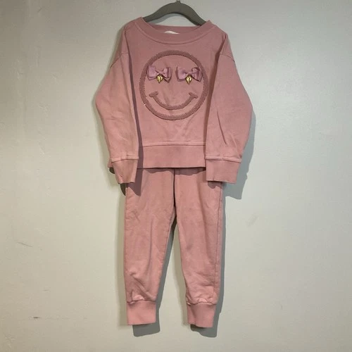 Angel’s Face Girl’s Pink Tracksuit Happy Face Bow Joggers Sweatshirt Size 5/6