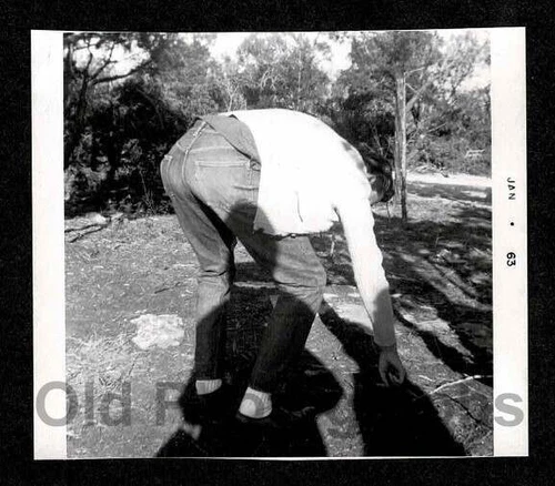 1963 BACKSIDE FACELESS MAN BENDING DOWN OLD/VINTAGE PHOTO- B174