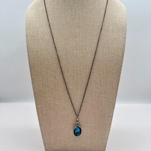 Vintage 90s Silver Tone Blue Faceted Teardrop Pendant Necklace Women's Jewelry