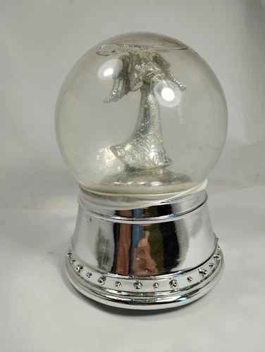 Musical Guardian angel snow globe. Silver Fairy Working Roatating with Music