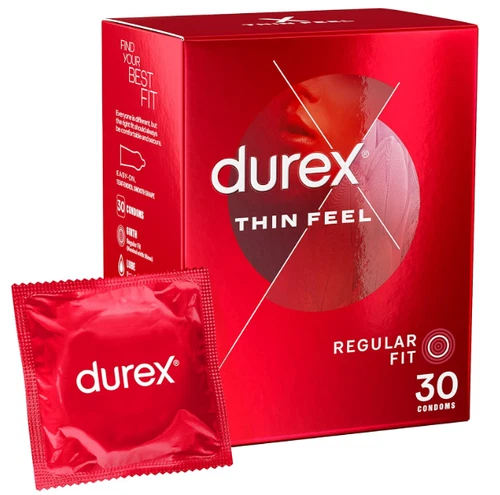 Durex Thin Feel Latex Condoms for More Sensitivity Regular Size Pack of 30