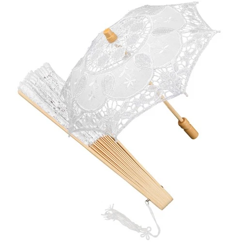 1 Set Lace Umbrella Hand Fan Set Wedding Decorative Parasol Photography Prop