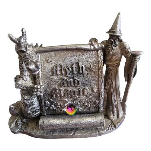 “Myth And Magic” Pewter Wizard Colorful Crystals With Dragon Fairy