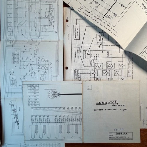 VINTAGE FARFISA COMPACT DELUXE PORTABLE ELECTRONIC ORGAN SCHEMATIC DIAGRAMS