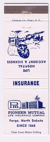 Matchbook Cover Pioneer Mutual Life Insurance Fargo North Dakota