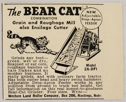 1949 Print Ad Bear Cat Grain & Roughage Mill For Farm Western Land Hastings,NE