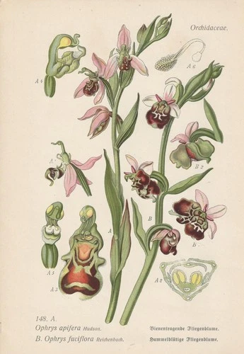 Bee Orchid (Ophrys Apifera) Orchid Thome Chromolithography Um 1900