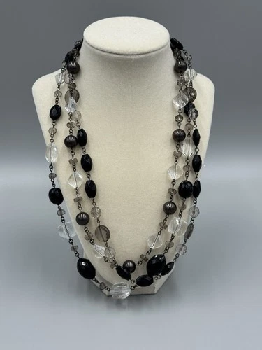 Beaded Clear Black Gray Bohemian Style Necklace Layered Costume Fashion Jewelry