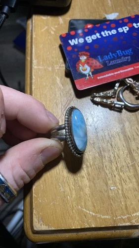 Natural Larimar Ring 925 Silver Oval Blue Gemstone Jewelry