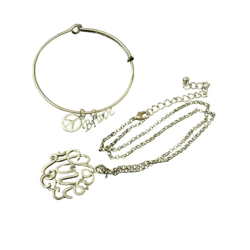 Silver Toned Set Brave Bracelet and Love Necklace Girls Fashion Jewelry