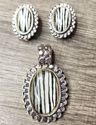 Zebra Pendant & Earrings Vintage Antique Retro Look Resin Stripe Fashion Jewelry