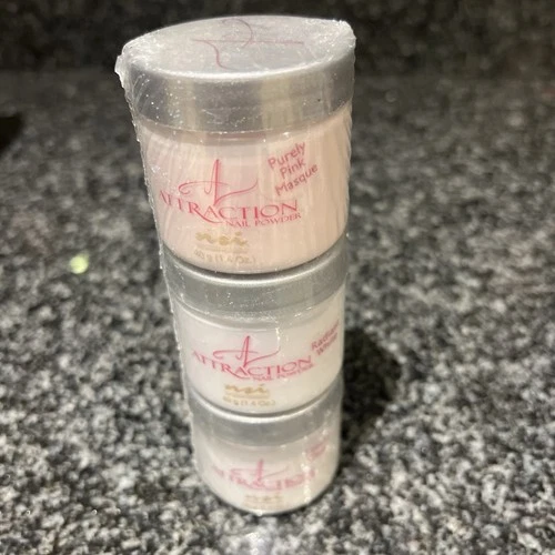 NSI ATTRACTION ACRYLIC NAIL POWDER 3 x 40 GRAM: WHITE-CLEAR-PURELY PINK MASQUE