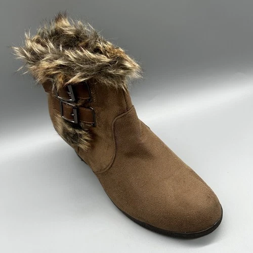 Lilley Ankle Boots Wedge Soles Faux Suede Fur Brown Zips Buckles Womens Uk 6