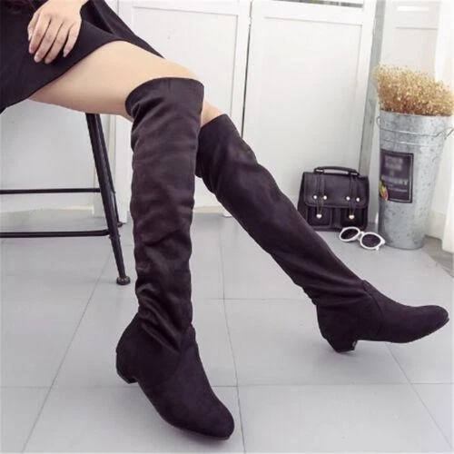 Women Winter Over The Knee High Boots Low Heels Elastic Faux Suede Riding Boots