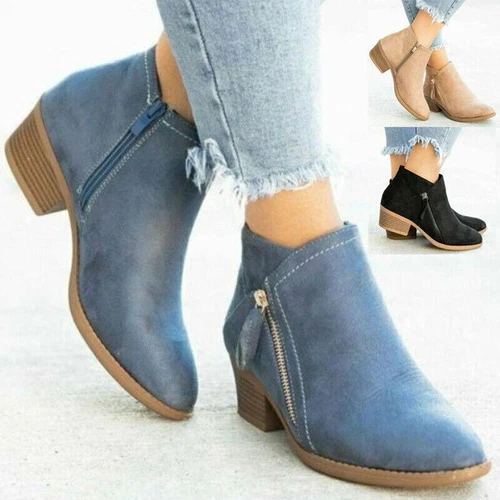 Fashion Womens Side Zipper Booties Chunky Low Heels Faux Suede Ankle Boots Shoes