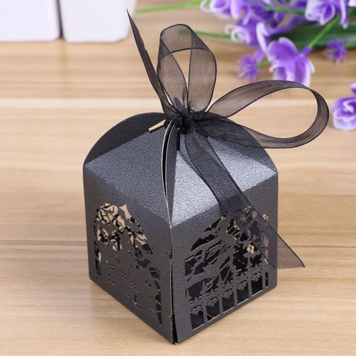 50 Pcs Hollow Die Candy Boxes Wedding Favor Boxes Halloween Black Paper