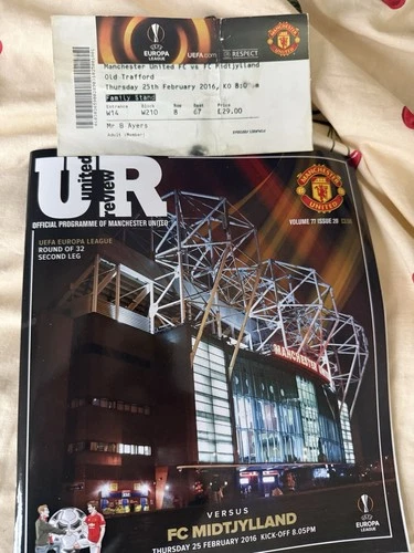 Match day Program And Ticked For Feb 2016 Manchester United Vs Fc Midtjylland