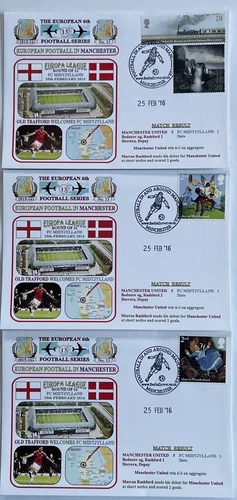 Manchester Utd V FC Midtjylland 25th Feb 2016 Set Of 3 Dawn First Day Covers