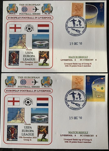 Liverpool v FC Utrecht 15th December 2010 Europa League Dawn First Day Cover X 2