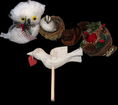 5 Bird Cardinal Owl Dove Themed Christmas Ornaments Decoration Lot Feathers
