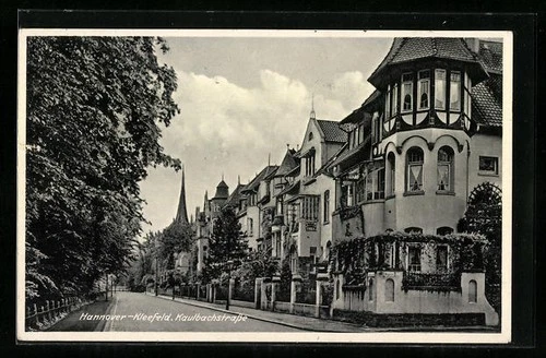 Postcard Hanover-Kleefeld, Kaulbachstrasse with trees 1941