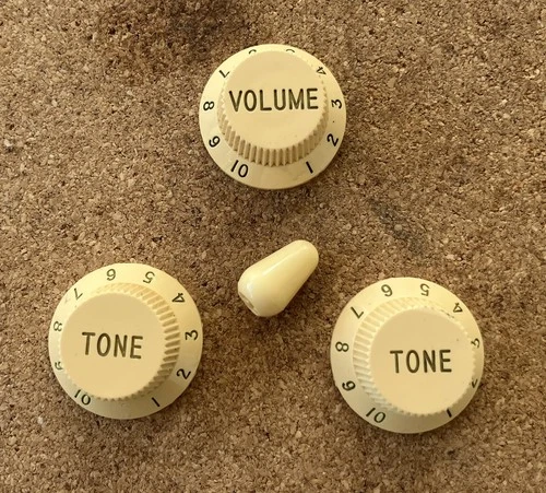 Set of 3 Vintage 1980s Fender USA Stratocaster Knobs Heavily Yellowed Aged White