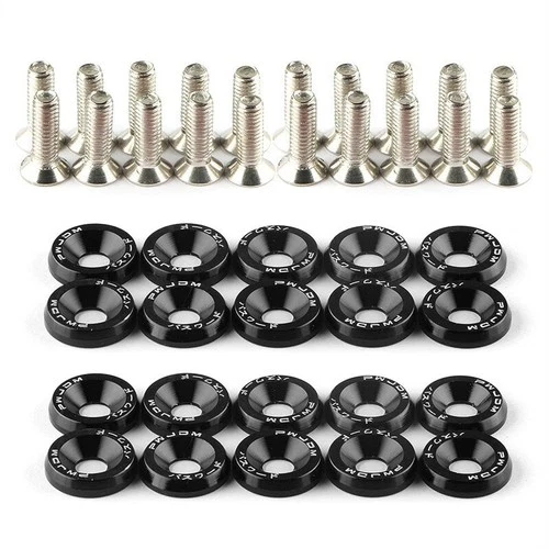 20PCS Black M6 Fender Bumper Washer Bolt Engine Bay Dress Up Kit Aluminum