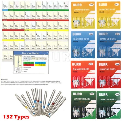 132 Types 100pcs Dental FG Diamond Burs For High Speed Handpiece 1.6mm SANDENT K
