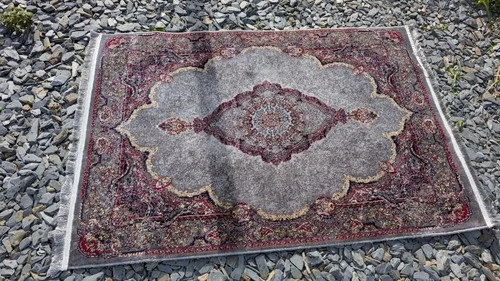 Traditional Silver/Grey Medallion Area Rug - 120x170cm (Silky Finish)
